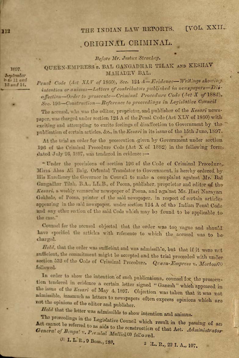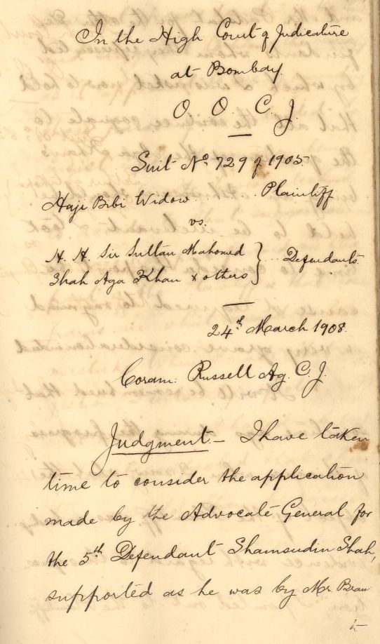 on in the Bombay High Court. The first is undertaken by the information Technology Department, the scanning of the judgements and documents from recent past which are not bound are being scanned using ADF scanner. The second digitization project is undertaken by the Judges' Library which includes scanning of original judgments, Judgments from the old law reports like the Bombay High Court Reports, Bombay Law Reporter, ILR Bombay, Legislation from the Bombay Acts, Maharashtra Acts and State Gazettes and any other documents of historical importance. The scanning the original judgments and old law reports from the year 1862 has been started. The papers of these judgments are more then hundred years old and are delicate. Since Flat bed and ADF scanner cannot be used for scanning these declicate documents. The Judges' Library has procured "Bookeye 4" publication scanner. The publication scanner is an overhead scanner and book is placed underneath the scanner, the pages are scanned from above without damaging the document. The aim is to build an E- Repository to preserve our judgments and historical documents to facilitate the access of information to the legal scholars and researchers. Some historical judgments / documents which have been scanned ![]() Judgment of First Trial of Lokmanya Tilak in 1897 from ILR (Bombay) Handwritten Judgment in Hajibibi Case of 1909 |