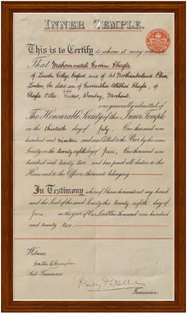 He joined the Chamber of Mahammed Ali Jinna and was elevated to the