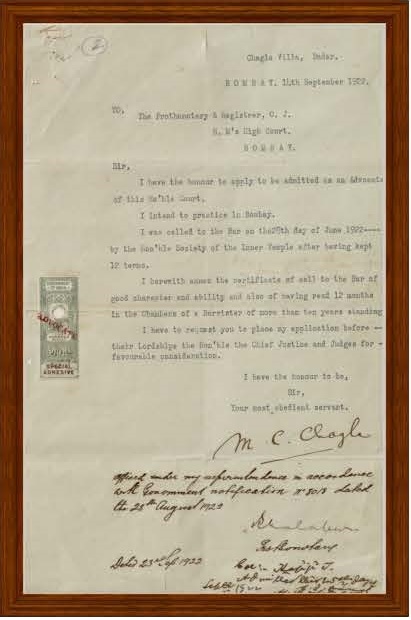 applied for practicing at Bombay High Court on 14 September 1922.