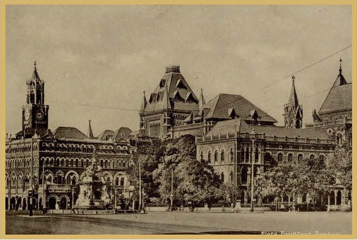 view Flora Fountain between Bombay Club and PWD building - 1920